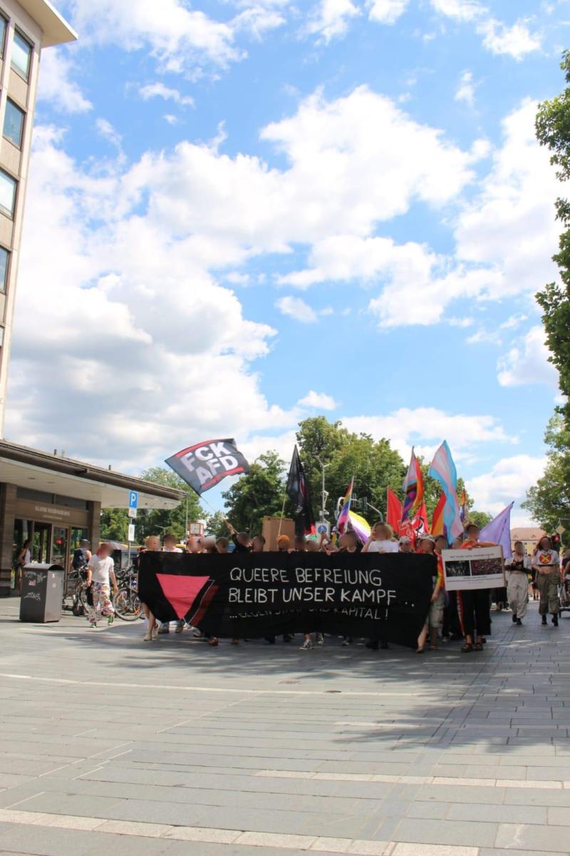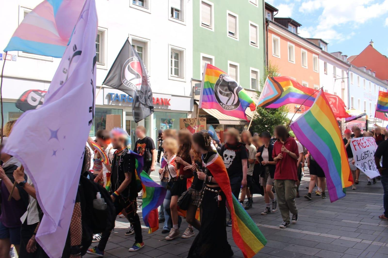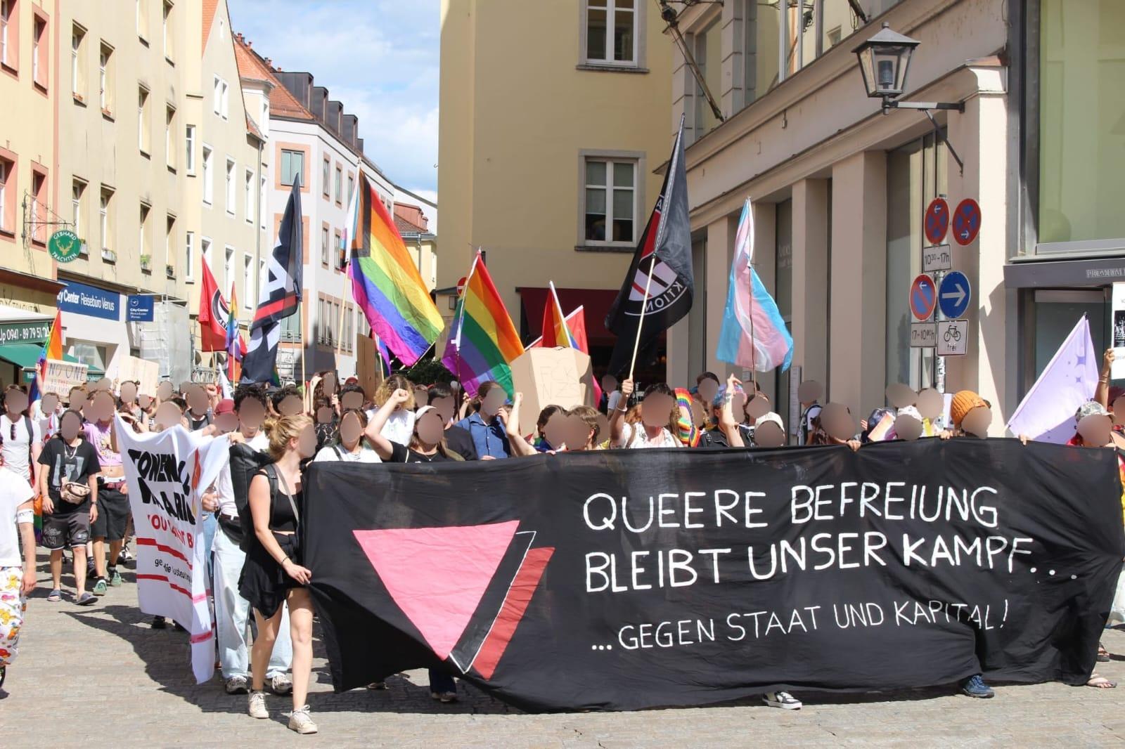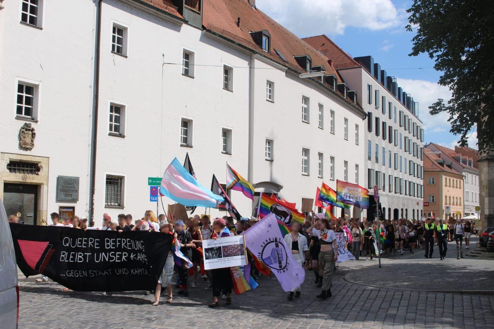 Am Samstag, dem 28.06. fand zum 56-Jahrestag der Stonewall Riots der erste antikapitalistische Christopher Street Day in Regensburg statt. Damit sollte auf den weiterhin notwendigen Kampf für Rechte von queeren Menschen aufmerksam gemacht werden.